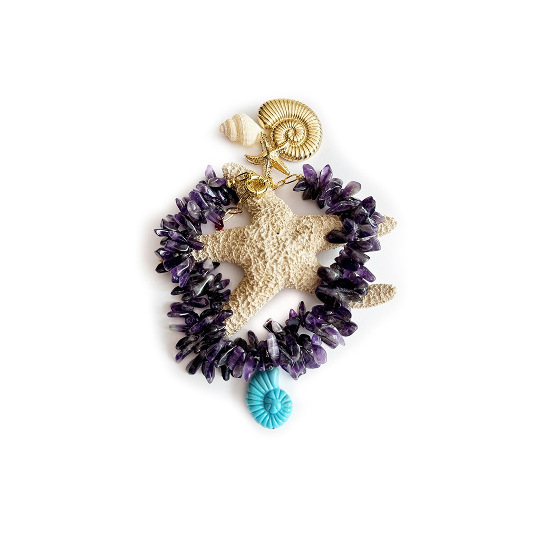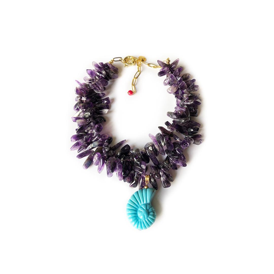 Collar Amatista doble hilo con Caracol turquesa resina.